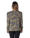 Ladies Choker Lace Up Cold Shoulder Sweatshirt Top with AppliqueFabrication: 60% Cotton, 40% Polyester